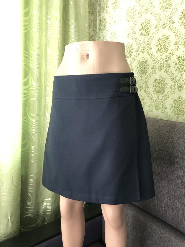 Фірма Ostin Studio. Розмір L. Модель трапеція на запах з костюмної темно-синьої тканини. Модель на підкладці, застібається на потайні гачки та внутрішні гудзики. Склад: 68% поліестер, 32% район(віскоза).