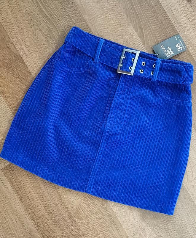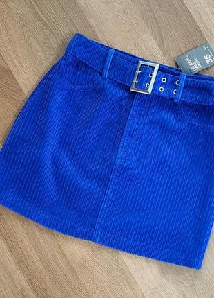 Крутая мини юбка с декоративным пояском. Выполнена из вельветовой ткани в рубчик. Стан новой - с биркой, покупала в Чехии. Длина сзади - 39 см, ПБ талии - 36 см. Отлично подойдет на весну под пальто/тренч и ботфорды.