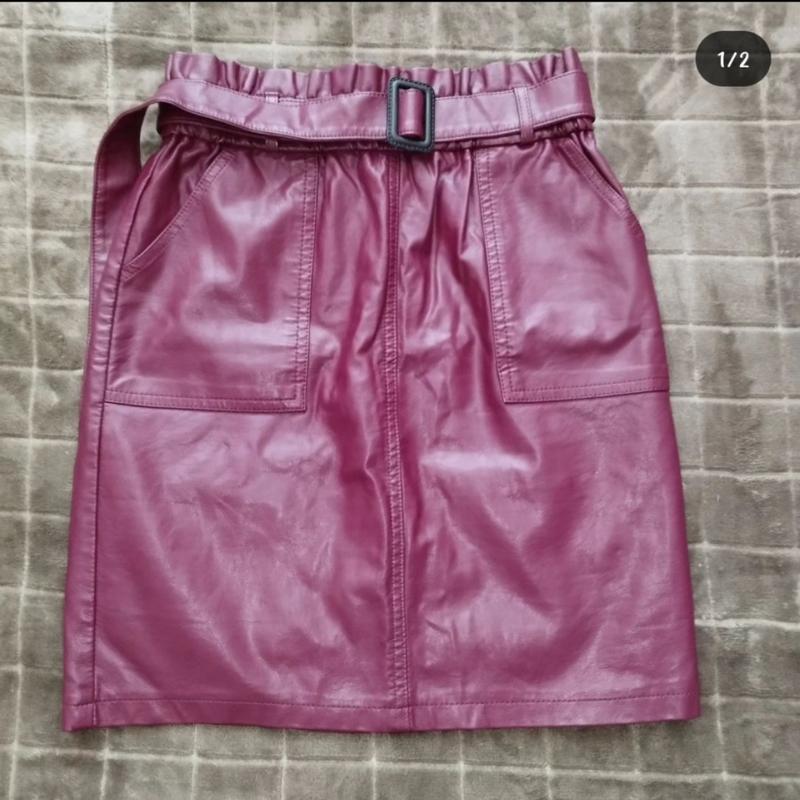 Спідниця лакована, з поясом та карманами, позаду невеликий виріз Розмір - s-m