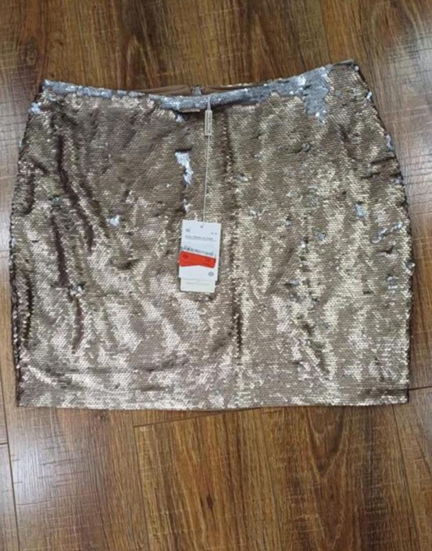 Замечательная, нарядная юбочка на размер 46-48р., в шашуйках золотистого цвета. Фирменная, новая юбочка, в паэтках, подойдет на размер 46-48р, замеры пот-42 см, поб-53 см, длина - 42 см. Оплата на карточку, доставка Укрпочтой, Новой почтой. Оплата на карту, доставка по Новой почте или Укрпочте. Обмену и возврат не имеет.
