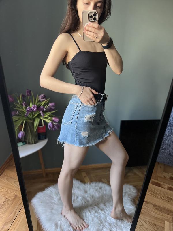 Спідниця джинсова Pull&Bear Розмір 26 S Довжина виробу 36 см ПоТ 35см, ПОБ 44 см Не тягнеться 100% бавовна Мої параметри: зріст 162 см, талія 62 см, стегна 89 см Стан виробу ідеальний Чорна маєчка з фото H&M теж в продажі