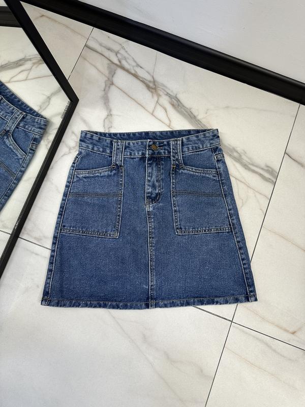 Стильна джинсова спідниця розмір М добре маломірить,заміри в фото.В ідеальному стані,як нова