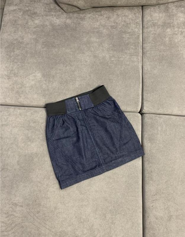 Фирменная джинсовая юбка Оodji. Цвет темно-синий деним Размер на наборе: 170/34 Замеры Длина 39 ПОТ 31 ПОБ 42 #11