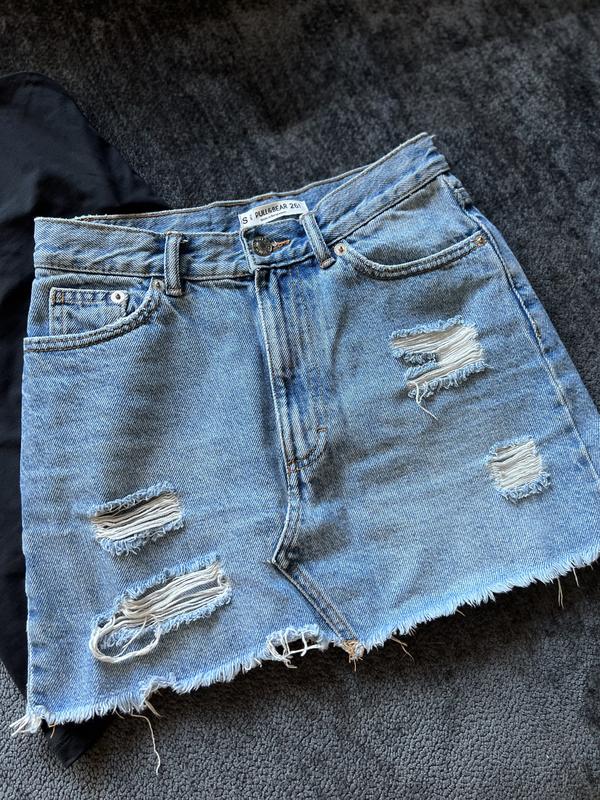 Юбка джинсовая Pull & Bear Размер 26 S Длина изделия 36 см ПоТ 35 см, ПОБ 44 см Не тянется 100% хлопок Мои параметры: рост 162 см, талия 62 см, бедра 89 см Состояние изделия идеально Черная маечка с фото H&M тоже в продаже