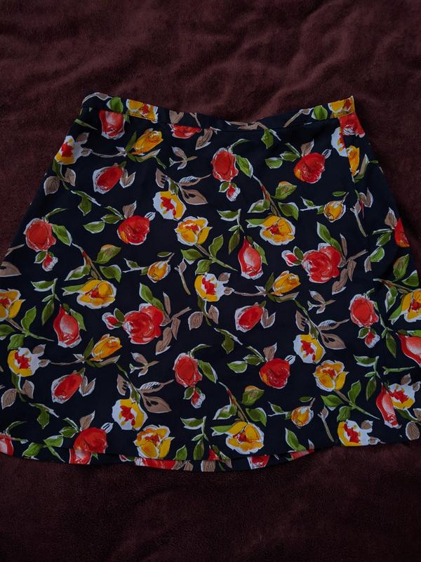 Мини юбка в красивый цветочный принт, размер XS - S, имеет маленький дефект (на последнем фото показано)