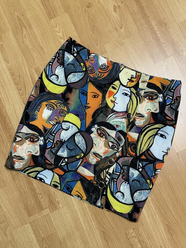 Спідниця / юбка міні. Прикрашена бічною планкою та ґудзиками, ззаду на блискавці. НОТ - 38 см НОБ - 47 см Довжина - 44 см. В наявності багато речей за приємними цінами😉