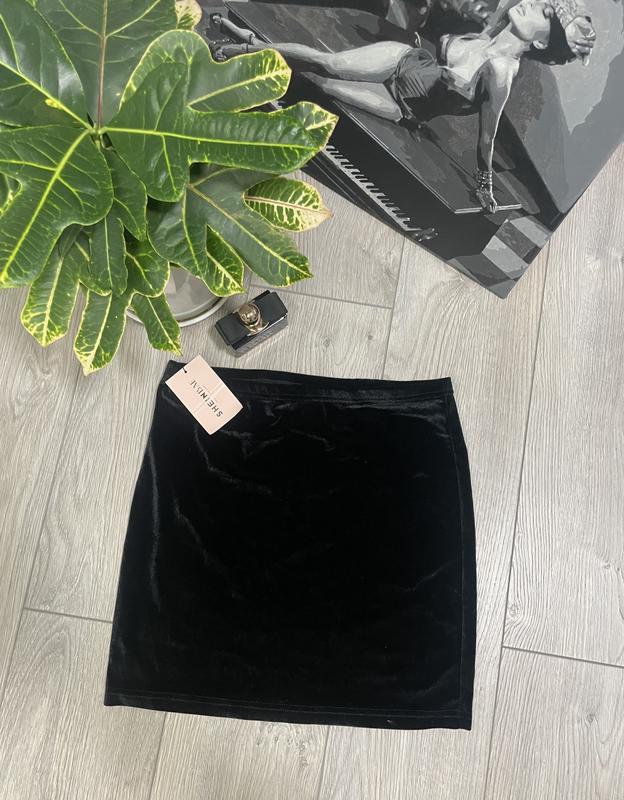 Велюровая юбка Shein Размер по набору L, на М также подойдет Длина 42 см Ширина по поясу (полуобхват) 36 см, тянется до 50+.