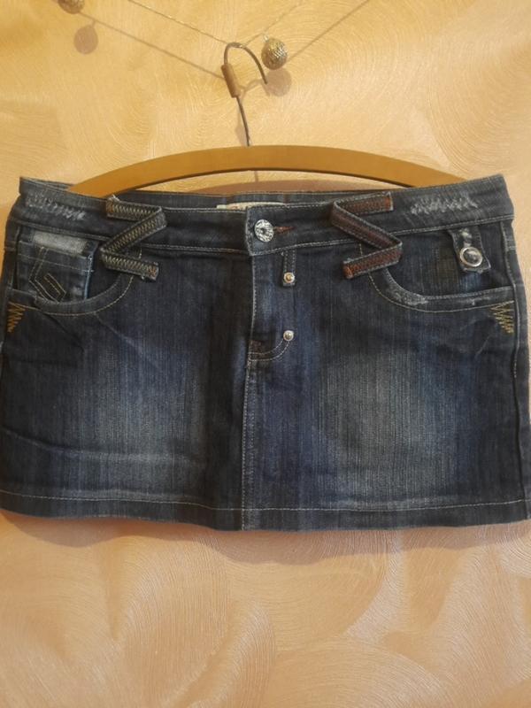 Юбка джинсовая синего цвета. Длина-29см. Ширина в поясе-43см.