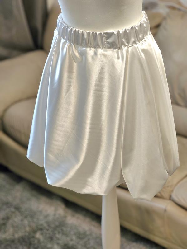 Трендовая юбка атласная, белая, с поясом резинкой.