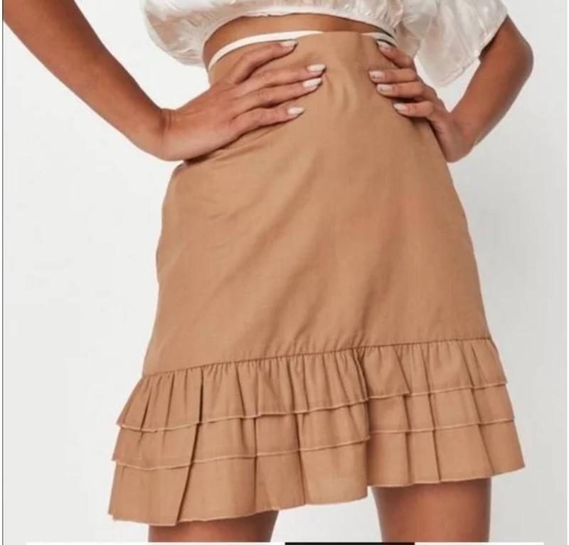 Мини юбка с рюшами песочного цвета Missguided Размер UK 6 EUR 34 XS/S Ширина по поясу 32, бедра 46, длина 46 Боковая молния 65% полиэстер 35% хлопок материал не тянется 355грн