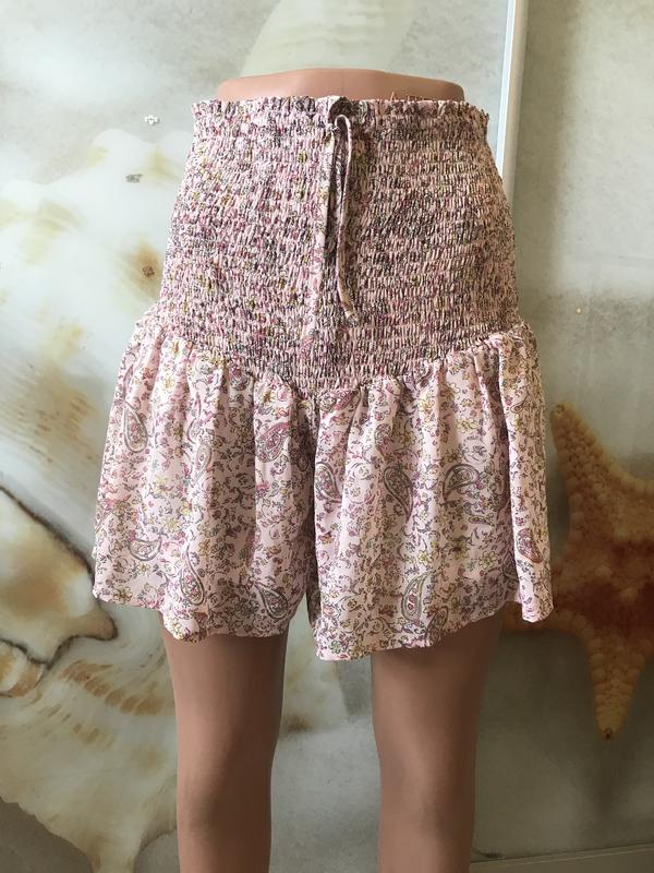 Цветочная шифоновая юбочка-шорты от Loavies. Высокая талия. На поясе широкая сборочка-резиночка. Низ на подкладке. Цветочный принт. Тканина шифон. Легкая. Красива!!! Размер С, сядет на С-М. Замеры: Талия полуобхват - 32 (тянется до 47)см; Бедра полуобхват - 39 (тянется до 60)см; Длина - 43/44см, шаг - 12см. Совершенно новая, без бирки! Цены у меня низкие, по сравнению с другими сайтами. Отправка на каждый день Новая почта и Укрпочтта (Нд. выходной).