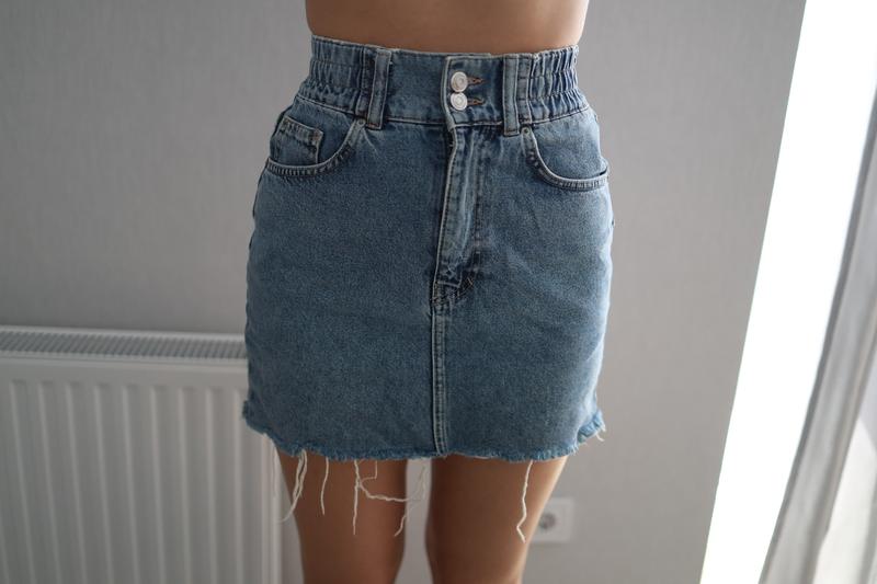 джинсовая мини юбка бренда Pull & Bear, в отличном состоянии, размер S