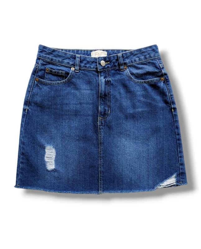 УКРПОЧТОЙ отправляю, но только при условии оплаты на карту. Джинсовая юбка А-образного силуэта F&F. 100% хлопок. Джинс летний Край не обработан. Размер указан 10(38) Состояние идеальное, не секонд. ================= Длина - 43 Полуобхват по поясу - 38 ПОБ -49 ПО по низу 54 Не тянется. Желательно сверять мерки с подобными изделиями.