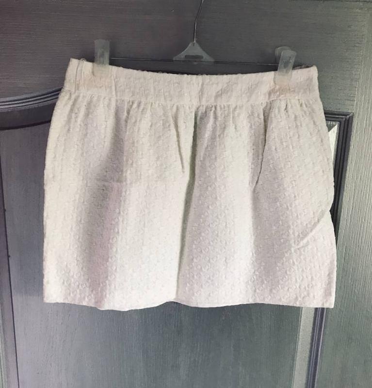 Юбка Moschino, оригинал интересная ткань ( котон/полиестер/лен) размер на фото замеры: по поясу около 36-37 см, длина около 37 см есть нюанс, симетрично слегка розового оттенка круги на поясе, возможно отстирается.. Новая, без бирки, не носила..