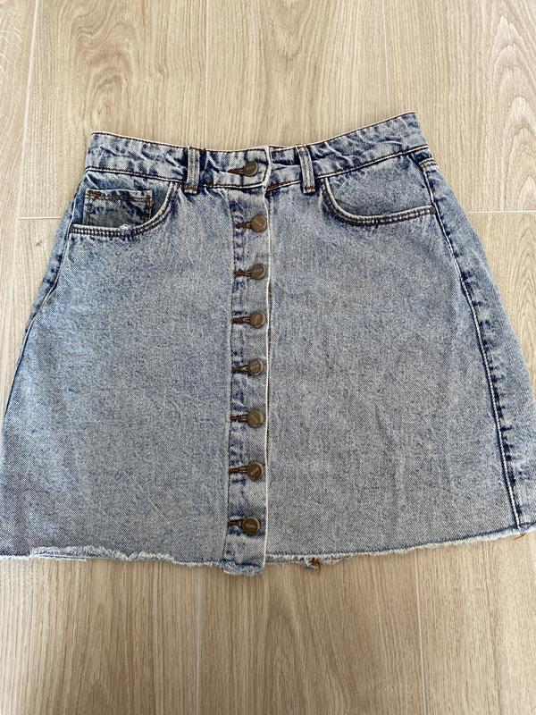 Джинсовая юбка на пуговицах с необработанным низом. Очень хорошее качество и состояние.