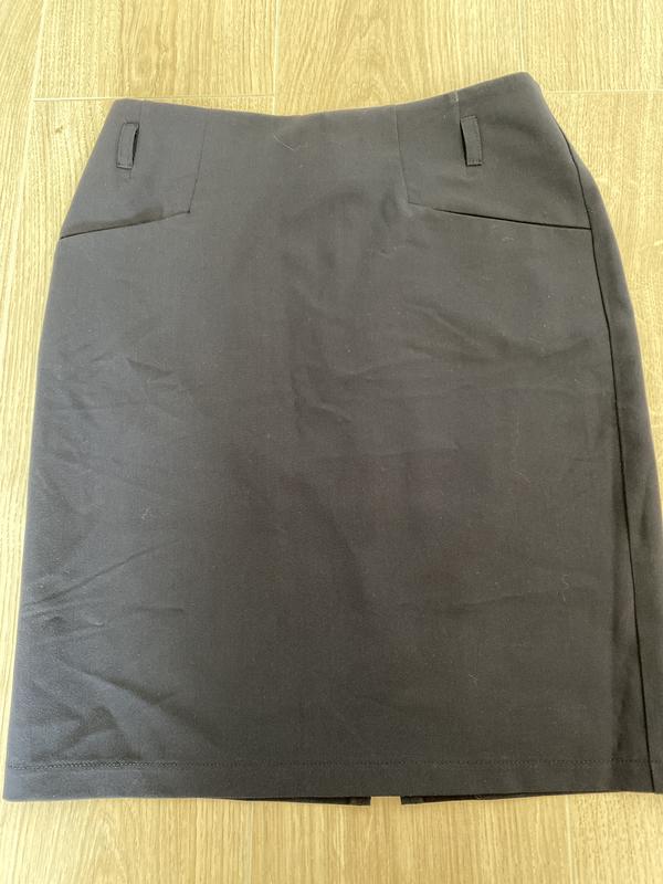 Классическая юбка с разрезом синего цвета.