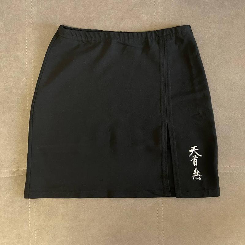 Ідеальна чорна міні-спідниця на кожен день. В гарному стані. Є розріз на нозі. Довжина 42 см, півобхват талії 33 см, півобхват бедер 46см.