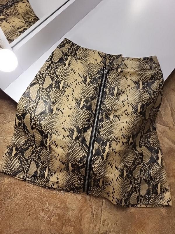 Юбка змея энимал принт животный чешуя рептилия мини клеш змейка заклепка кнопка деффект тр...