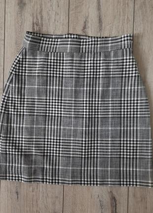 Юбка серого цвета, в клеточку, фирмы "MNG", объем талии 66 см, длина 45.