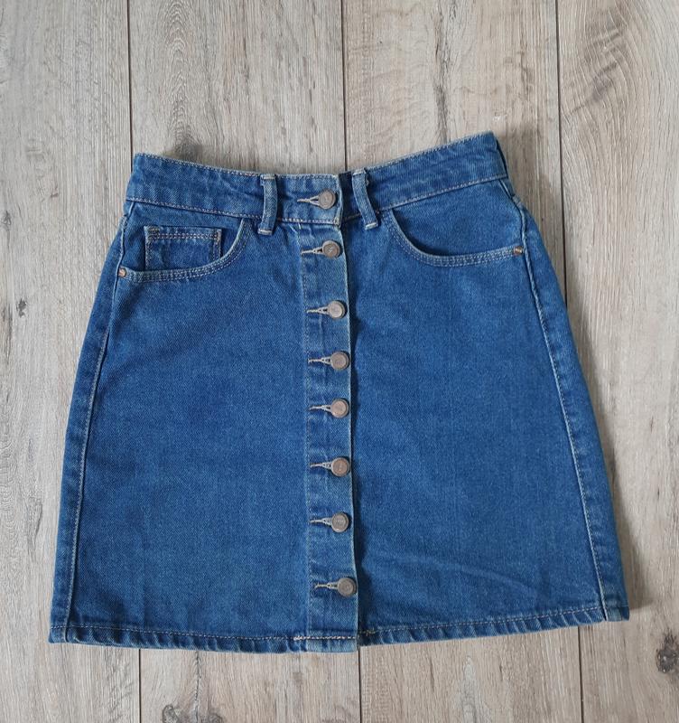 Юбка голубого цвета, объем талии 68 см, длина 43 см.