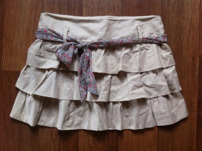 Красивая светлая бежевая юбка с пояском. Сделана каскадами-рядами в виде рюш. Размер S/36/наш 42. Ткань Х/Б, лёгкая и приятная к телу.
