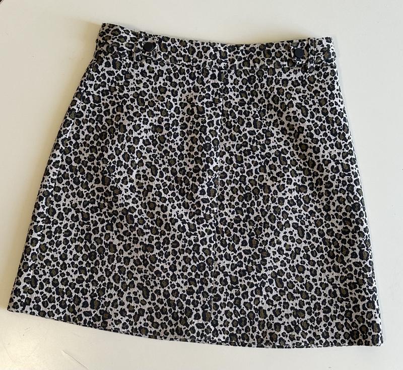 Юбка мини из жаккарда у леопардовый принт. Обхват талии - 68 см Обхват стегон - 94 см Длина изделия - 42 см