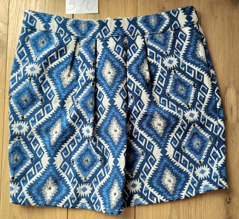 Яркая юбка мини из гобеленовой ткани. К ней есть сумка клатч из такой же ткани. Застегивается сзади на молнию. Есть подкладка. Длина 44см Полуобъем талии 41см Полуобъем бедер 50см