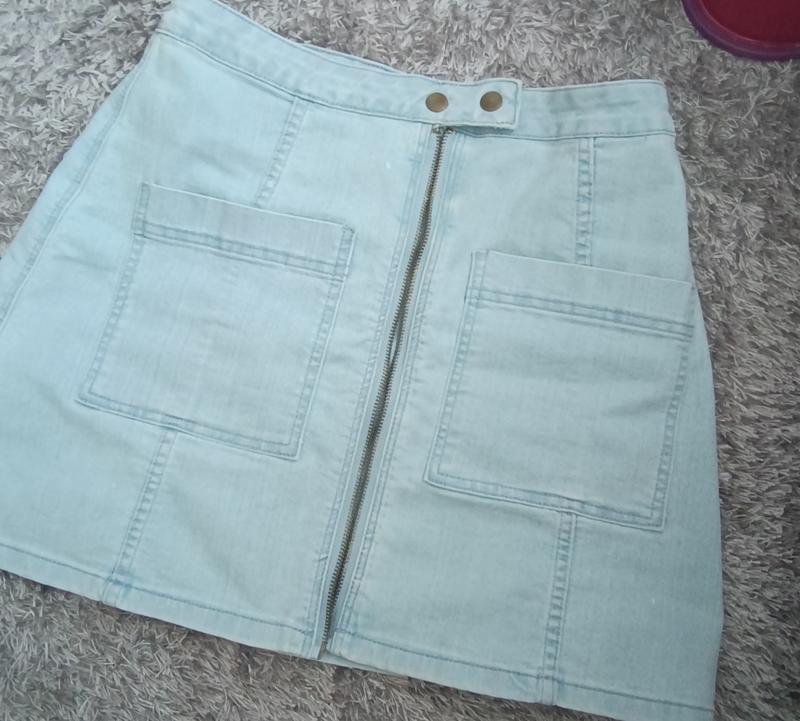 Светлая джинсовая юбочка на Лето🌞🔥Есть белые пятна которые незаметны на фото указала и это фабричный недостаток🙂↕️А так идеальная🤩
