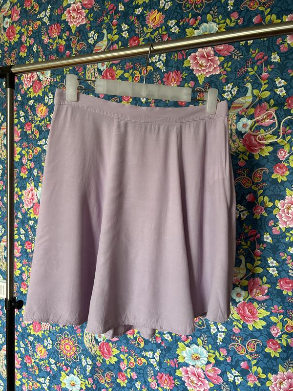 Отличная юбочка из вискозы, сзади в поясе есть резинка, талия 38, тянется до 48см, длина 45 см, в бедрах свободная.