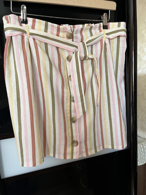 Якісна спідниця з суміші льону і віскози. Розмір вказаний EUR 44 (маломірить).Пот 47-55см, пос 58см, довжина 49см. Стан-нова.
