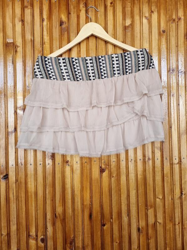 Юбка мини Pull and Bear. Короткая юбка ярусами. Розмір на бірці 30 (L). Сбоку застегивается на молнию. ПО зверху 40,5 см ПОС 52 см