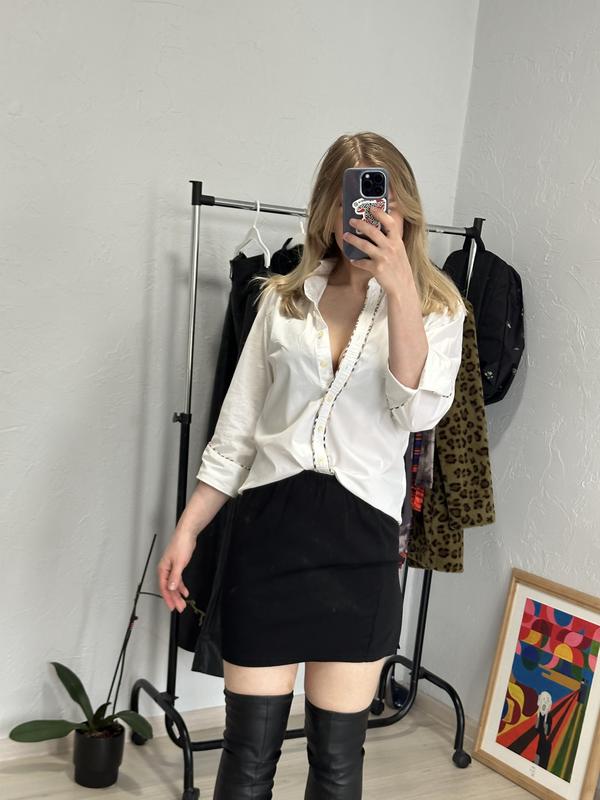 Офисная черная юбка мини Есть разрез Размер M (одетая на S- на меня забока немного) Она тянется