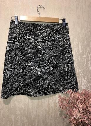 Короткая юбочка в черно-белом цвете, принт напоминает зебру :) Размер виден на фото с биркой (No5), на застежке, которая занимает примерно треть от всей длины Замеры (полуобхват): - Длина изделия ~ 43 см. - ПОТ ~ 34 см. - ПОБ ~ 44-45 см. За дополнительными вопросами или замерами обратитесь в личные сообщения:)