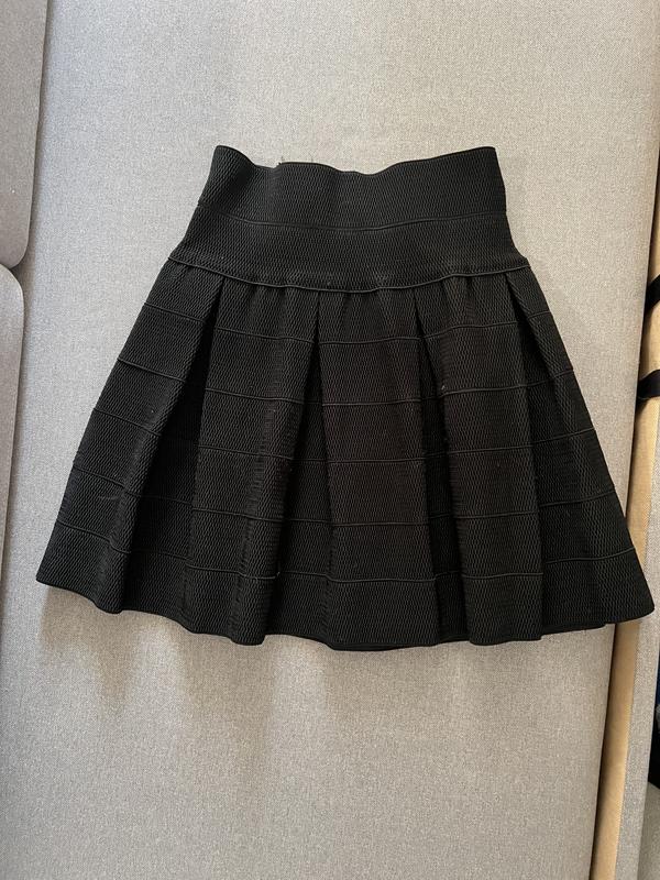 Черная юбка из очень плотной ткани, резинки. Держит форму. Замеры на дополнительных фото