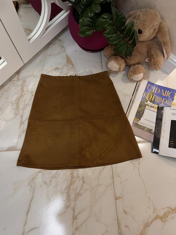 Женская юбка из замша в размере S. Стан - новый. Сзади на молнии. Длина - 42 см Пояс – 34 см Бедра - 47 см По линии низа - 55 см Молния - 19 см