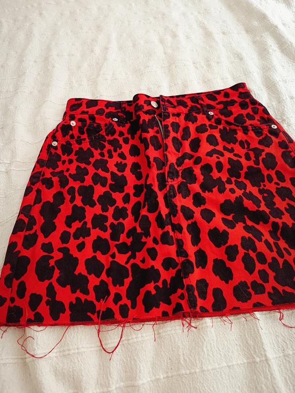 ярко красная мини юбка с необработанным краем.ПОТ 37, ПОС 47, длина 41 см