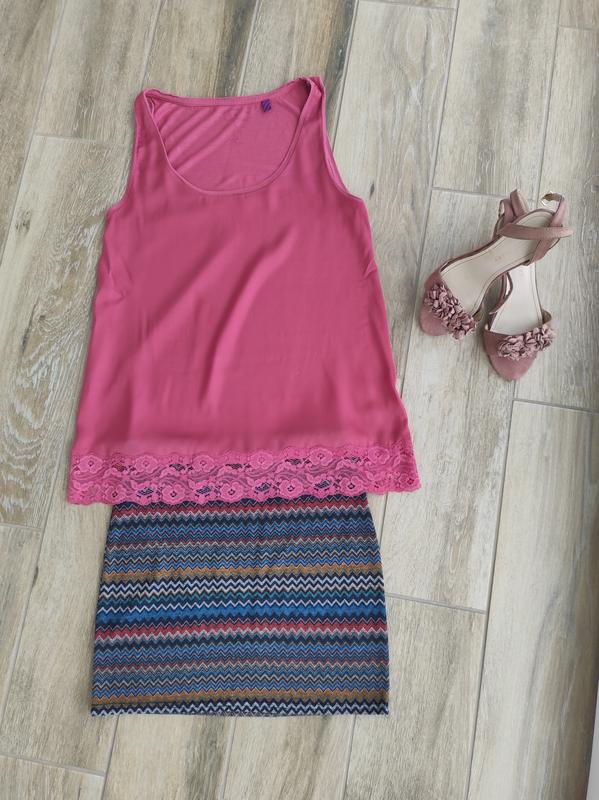 Мини-юбка с разноцветным орнаментом. Приятная к телу. Не мнеться
