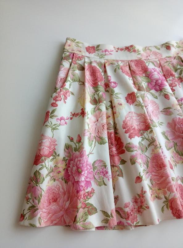 Красивая летняя юбка мини в цветочный принт. По бокам внутренние карманы. Без подкладки. Состояние новой вещи, без бумажной бирки. Полуобхват талии - 37-38 см, Полуобхват бедер - свободный за счет сборки, Длина юбки - 43 см)