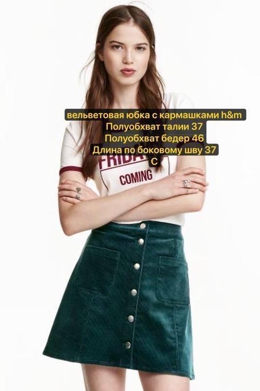 Зелёная вельветовая юбка с карманами и контрастными пуговицами хлопок от h&m с brandusa Полуобхват талии 37 Полуобхват бедер 46 Длина по боковому шву 37 С Арт. #144