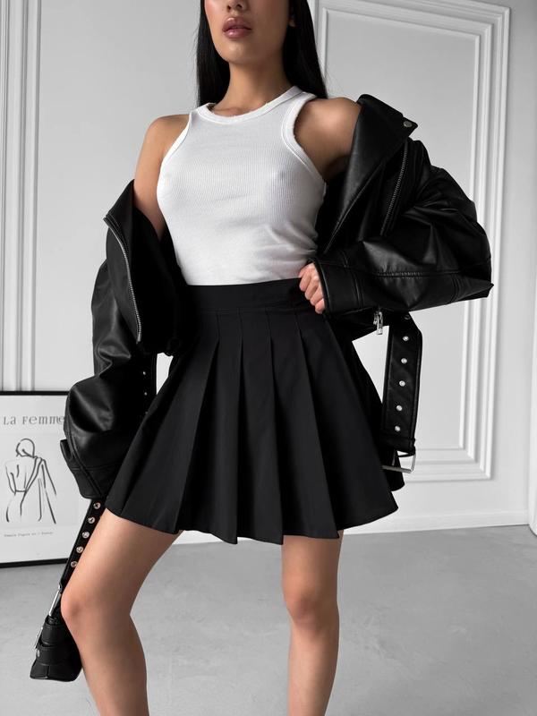 🖤ФОТО РЕАЛ 🖤 ▪️мод 370 ▪️ткань: облегченный тиар ▪️цвет: белый, черный ▪️XS-S, S-M, M-L Трендовая юбка, которая дополнит любой образ 🔥 С потайными шортиками ; Высокая посадка ; Качественная, легкая ткань; Длина изделия 41 см; На потайной молнии; Размер: Xs-S <unk> S-M <unk> M-L Талия: 58-63 <unk> 63-67 <unk> 67-72 Стегна : 90-95 | 96-100 | 100-104