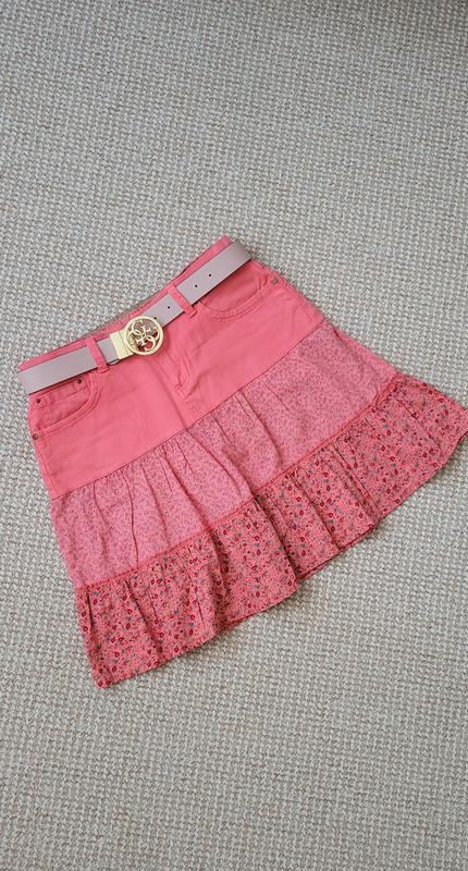 Спідниця Cache Cache коралового кольору ,100%котон, всі кишені функціональні спереду і ззаду. Не просвічує, без підкладу. Пояс 40см стегна 49см Довжина 47см