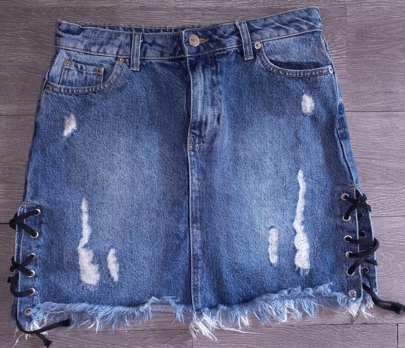 Очень крутящая джинсовая юбка сбоку на шнуровке. Виміри на фото. Размер на М. Отправлю.