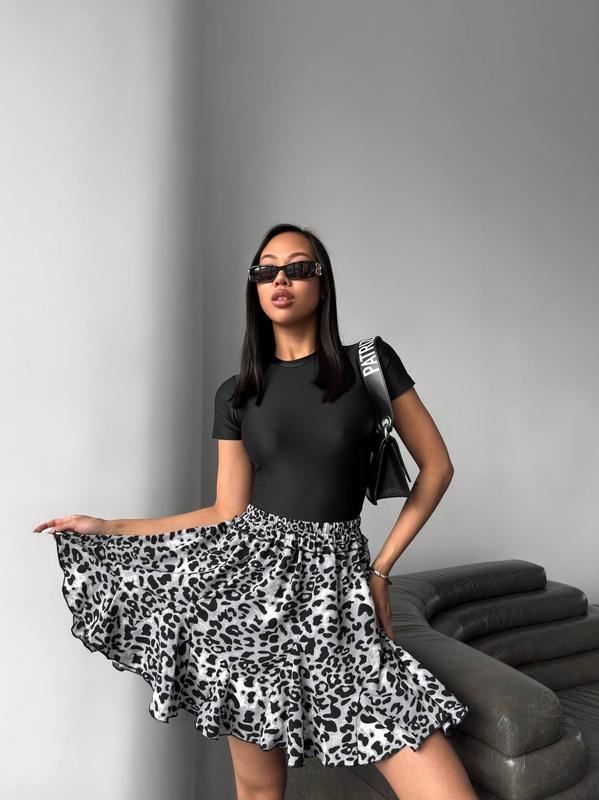 Ткань – плотный софт Размеры – 42-48 универсал Цвета – коричневый лео, черный лео, молочный, розовый и черный Тренд этого сезона – воздушные спідниці с воланами. Плотная ткань в 2 слоя, очень пышная и объемная, можно комбинировать во все. Универсальная вещь – точно должна быть в твоем гардеробе.