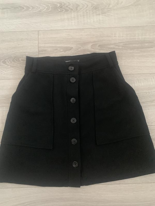Спідниця чорного кольору, спереду на ґудзиках, форма - трапеція