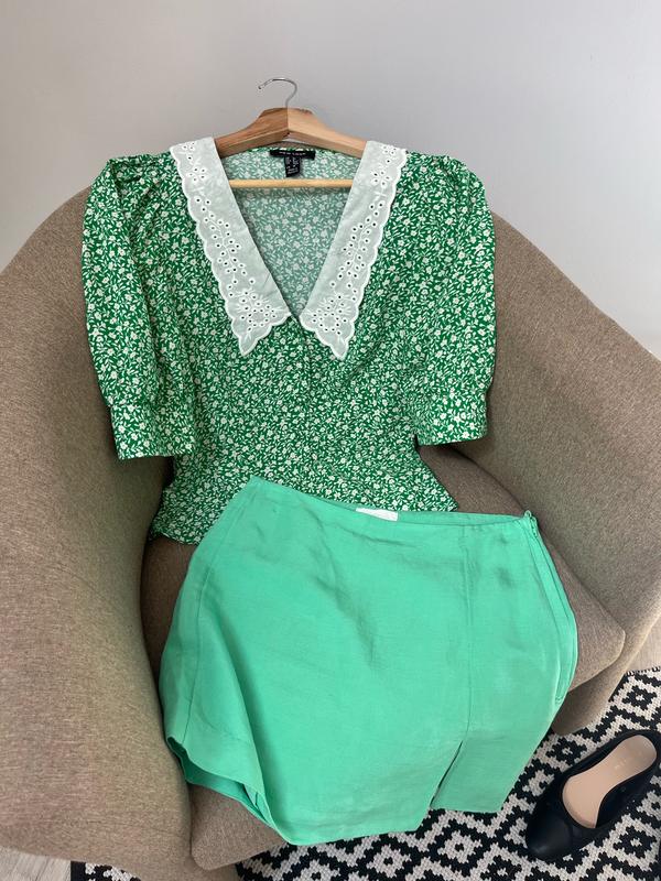 Мини юбка от бренда H&M Имеет размер сбоку по ножке Размер: S Замеры: Пот 36, Поб 44, длина 38 Состав ткани: изображен на фото Состояние;ю: идеальный