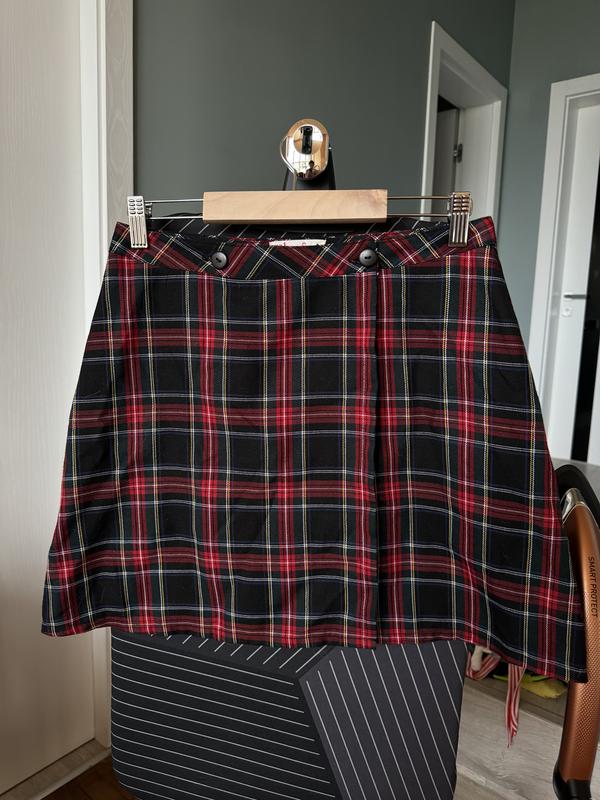 Женская юбка в шотландском принте. Застегивается на запах на 2 пуговицы. Ширина по поясу - 37 см Высота - 41 см