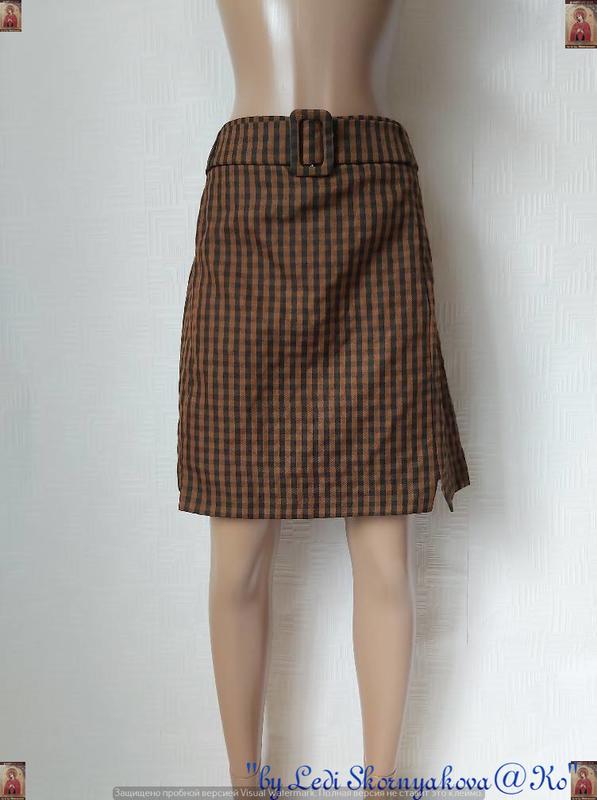 Фирменная primark с биркой мини юбка в мелкую клетку в цвете беж с поясом, размер 4хл