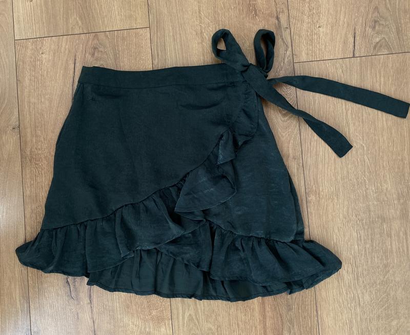 Неймовірно красива та легка спідниця на запах, завʼязується на бант, темно-зеленого кольору з перламутровим відливом , розмір с