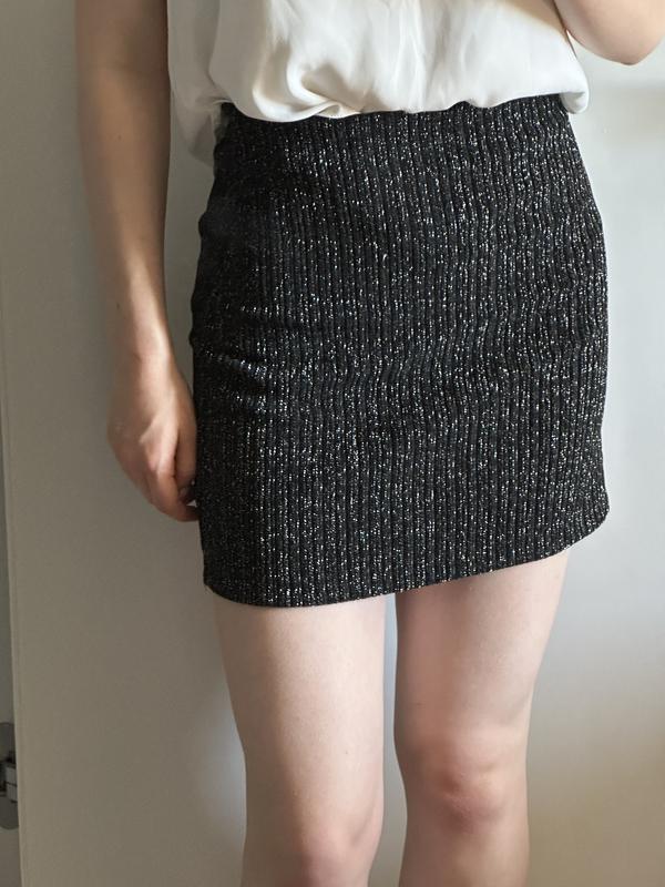Блестящая, мини юбка черного цвета. Невероятно сияет.