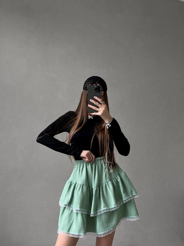 ФОТО РЕАЛ🔝 🔸Юбка «зефирка» ▪️Модель: 1544 ▪️Тканина: креп жатка LUX ▪️Размер: 42-46 (one size) ▪️Цвет: черный, белый, фисташковый,пудровый Супер качество по низкой цене🔥 💬 Тренд сезону 2024🔝 Невесомая и легкая юбка «воланчики» с кружевом💖 Люкс качество👍